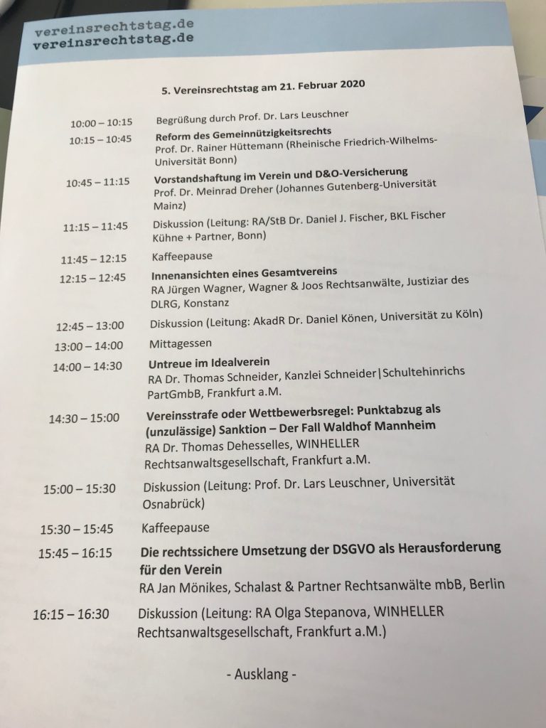 5. Vereinsrechtstag in Frankfurt/Main